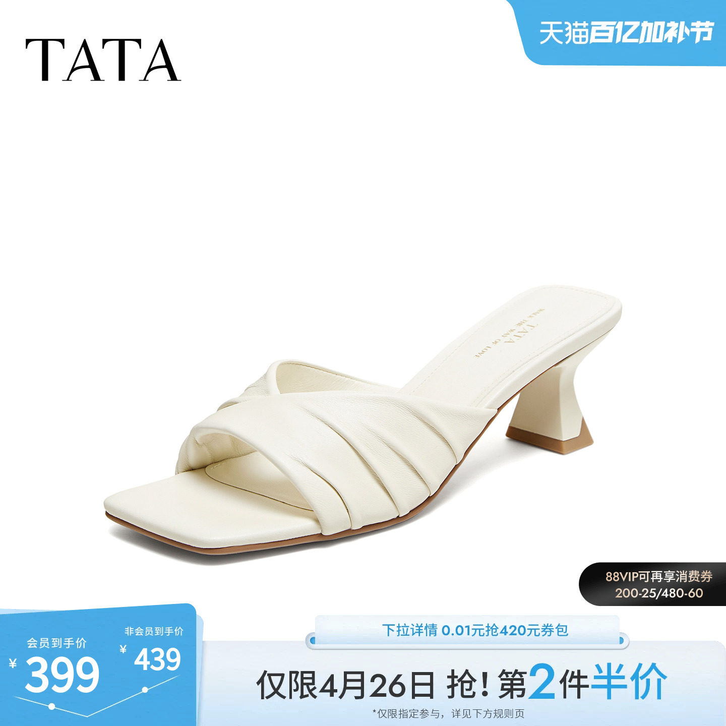 TATA他她猫跟拖鞋女白色凉鞋女外穿时尚单凉2026夏季新款X3R01BT6