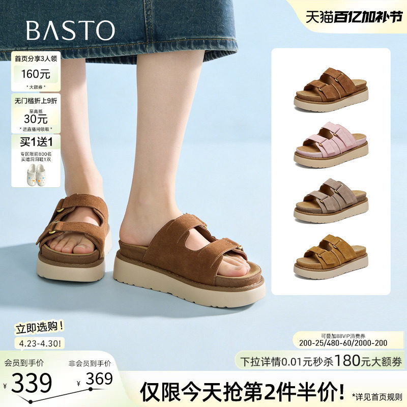 百思图2026夏季商场新款真皮厚底勃肯鞋露趾凉鞋女拖鞋ZHT89BT6