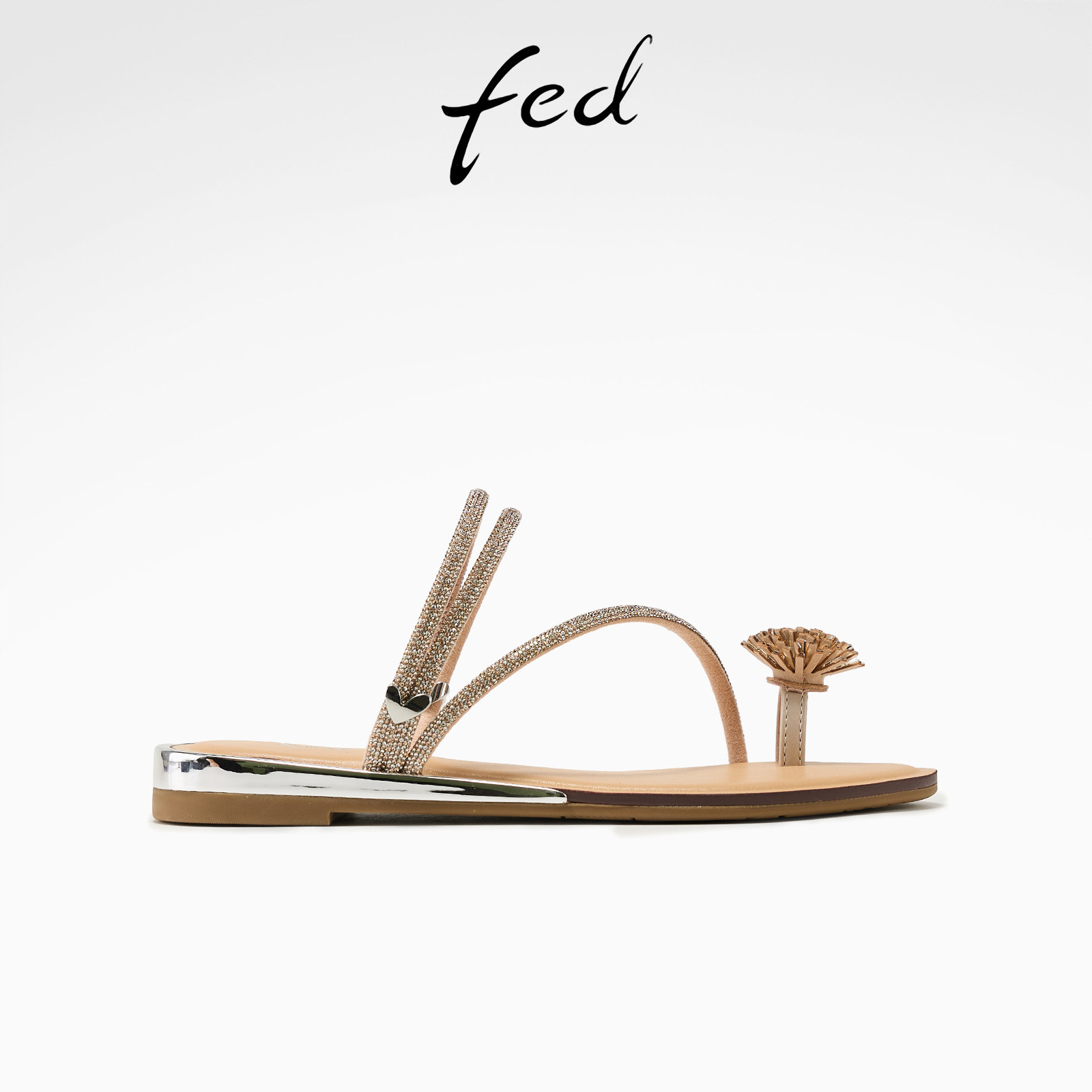 fed缎河星渡法式凉拖夏季新款女鞋软底沙滩拖鞋时尚一字拖YAB218