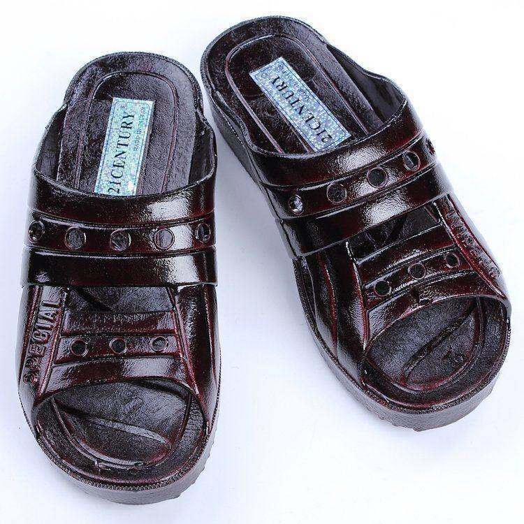 男士21century防滑厚底中老年人夏台湾漆皮沙头角外穿一字油拖鞋