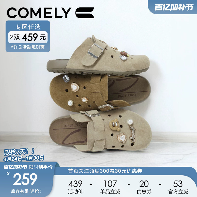 康莉真皮厚底勃肯包头半拖鞋女2026春夏季新款穆勒鞋商场款62186