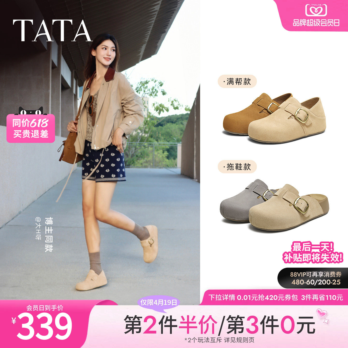 TATA他她女鞋春季勃肯鞋可外穿增高厚底休闲鞋包头拖鞋4UL01CH5