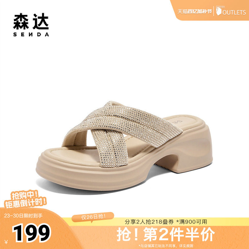 森达凉拖鞋女夏款商场同款简约休闲鞋子外穿厚底休闲拖鞋4RO39BT4