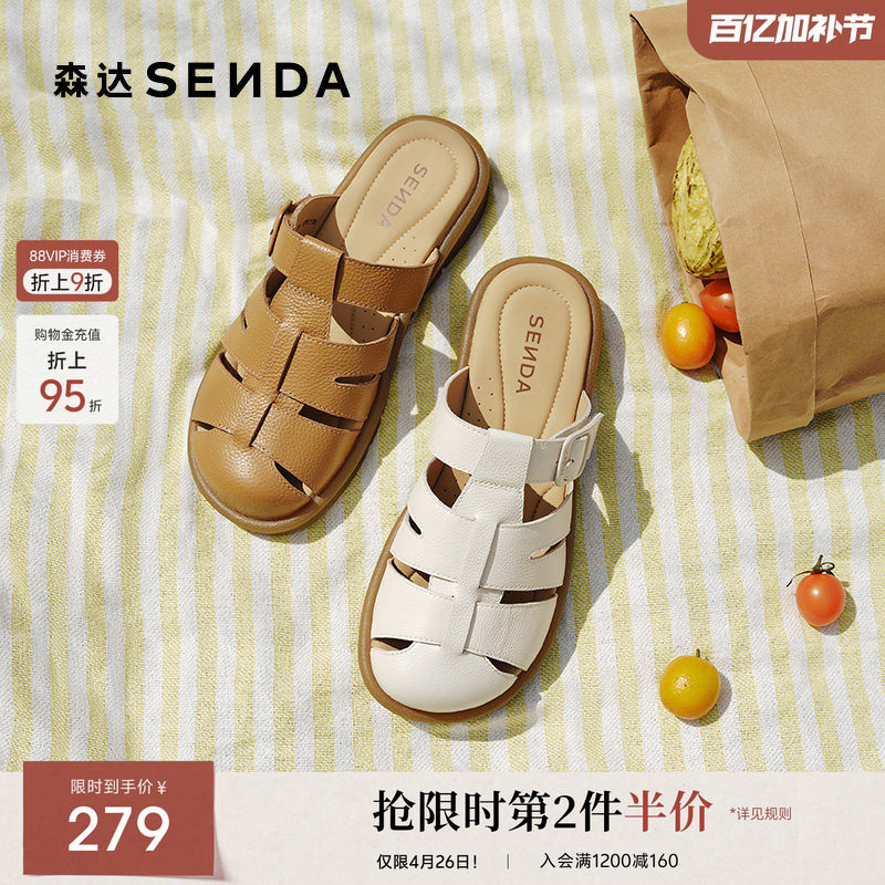 森达罗马凉鞋女款夏季新款商场同款猪笼包头凉拖鞋4DS37BT5