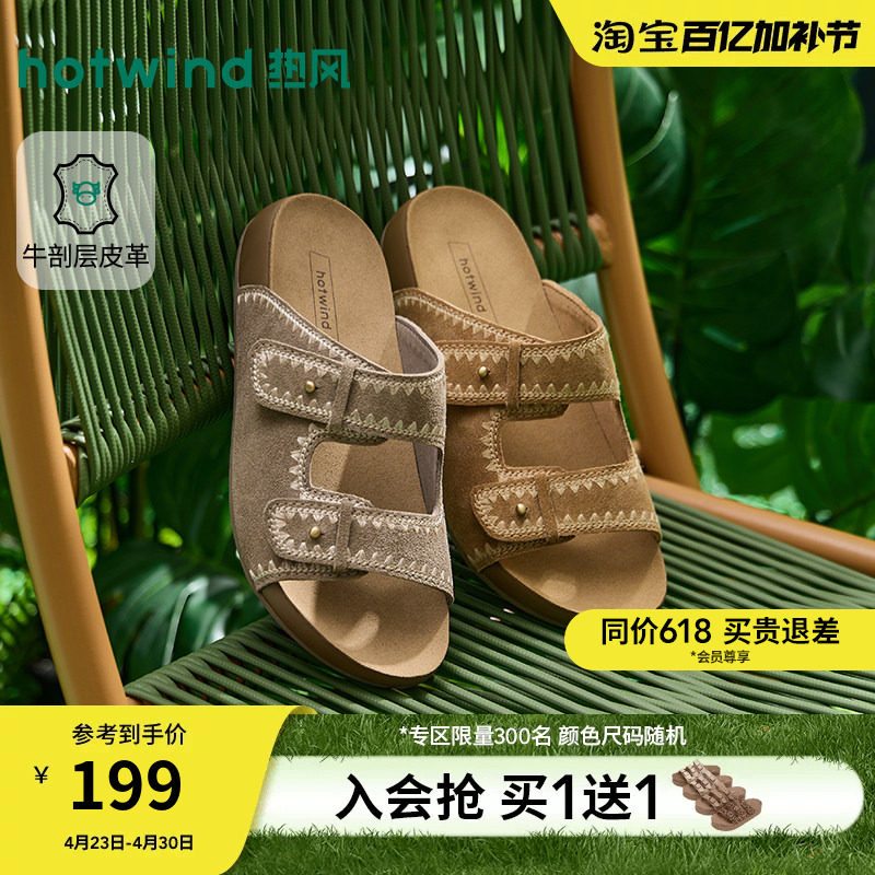 【商场同款】热风复古一字拖女鞋26年夏新款通勤拖鞋平底勃肯凉拖