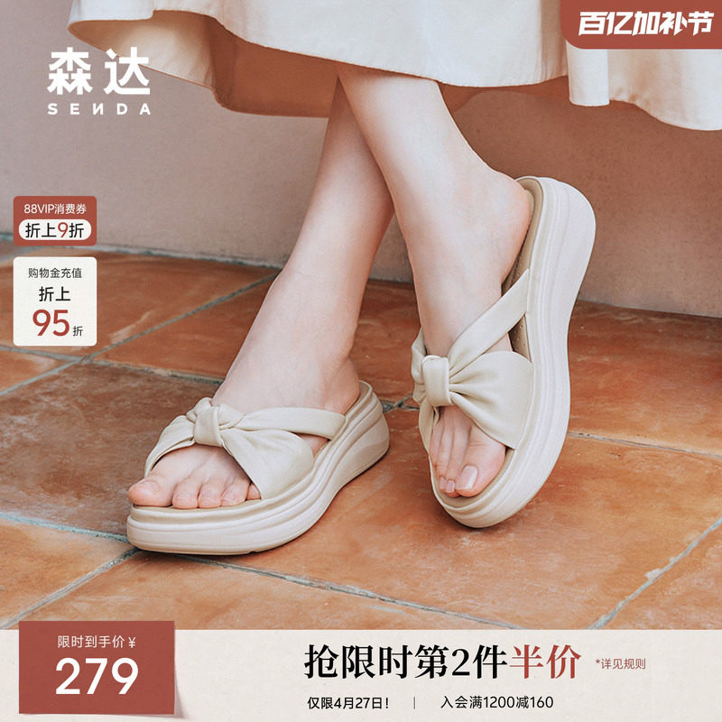 森达凉拖鞋女夏款商场同款简约休闲鞋子外穿厚底休闲拖鞋4RO39BT4