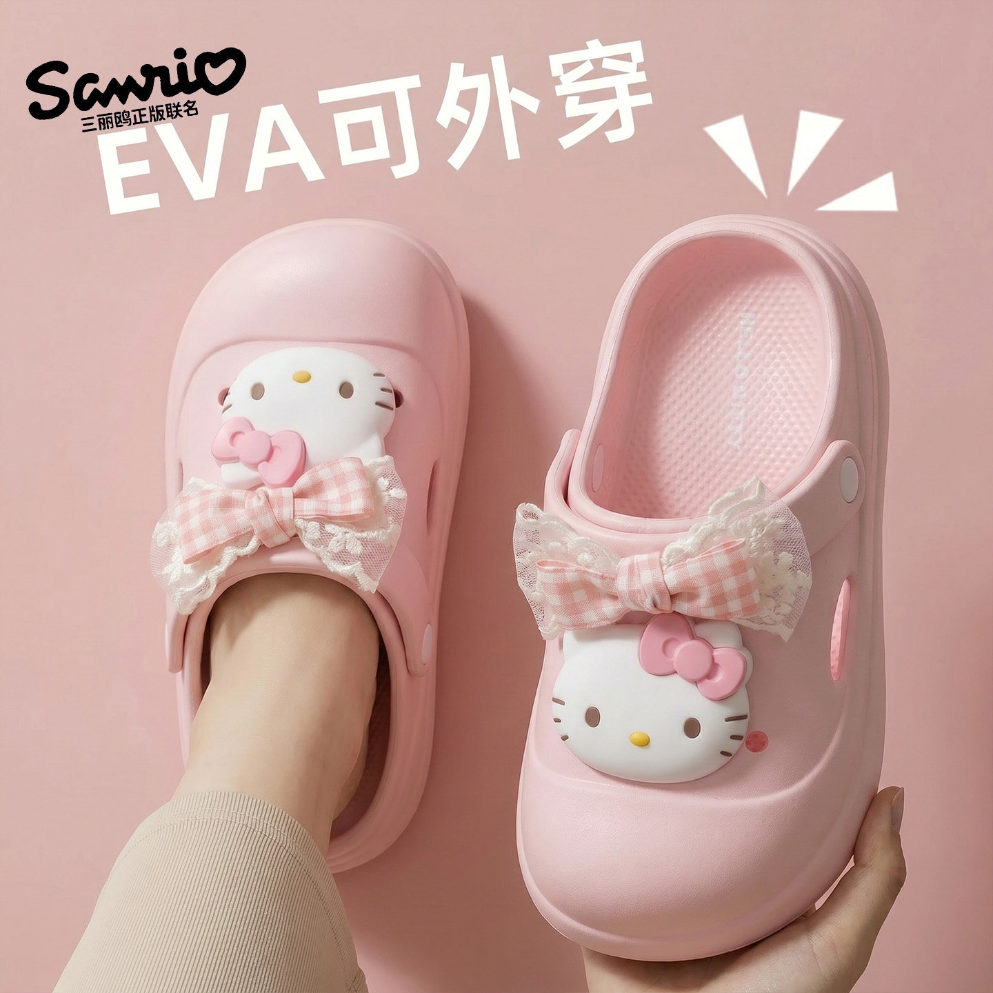 正版授权kitty猫洞洞鞋女款2026新款夏季外穿软底防滑包头凉拖鞋
