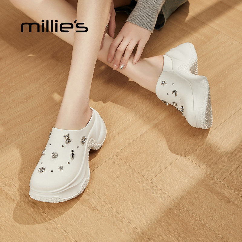 MILLIE'S/妙丽2026夏季厚底洞洞鞋女外穿防滑踩屎感一脚蹬凉拖鞋Z