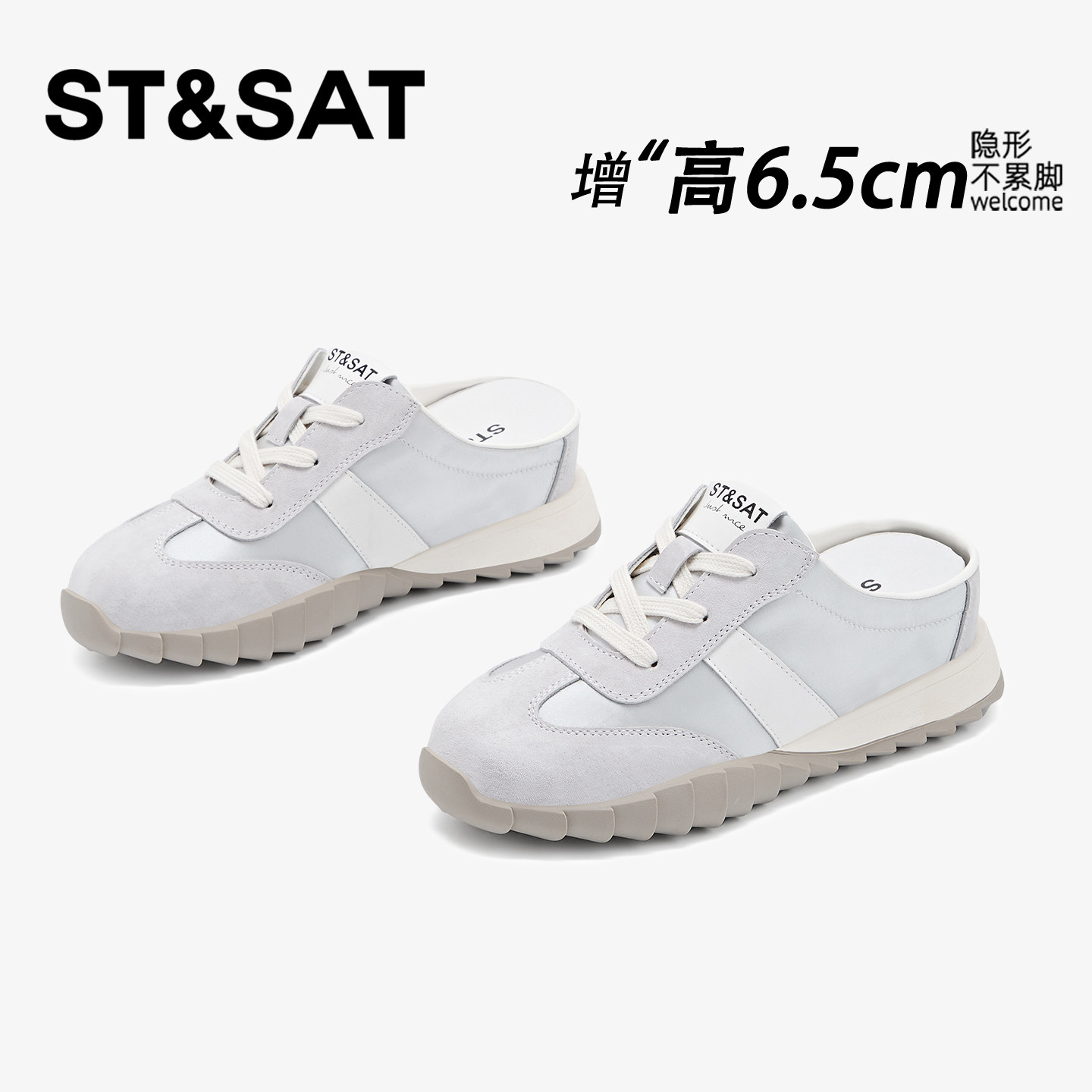 星期六6.5CM内增高包头半拖鞋女夏季外穿厚底孕妇一脚蹬懒人鞋