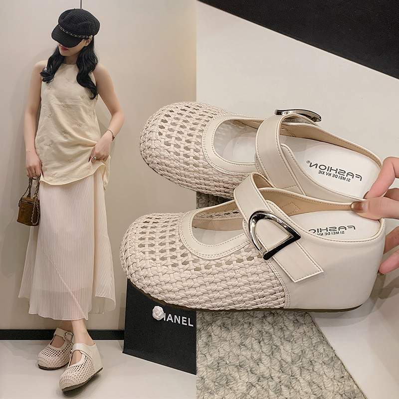 巨好看的半拖鞋内增高9cm厚底编织镂空勃肯鞋女夏外穿包头凉拖鞋