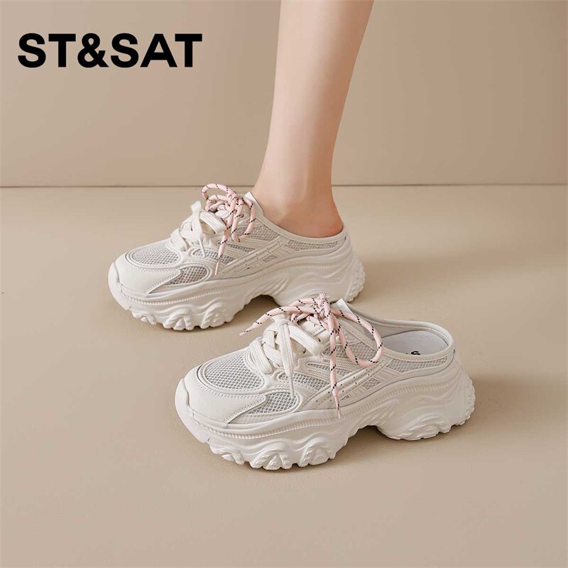 星期六包头半拖鞋女外穿春季网面透气轻便厚底老爹鞋百搭休闲拖鞋