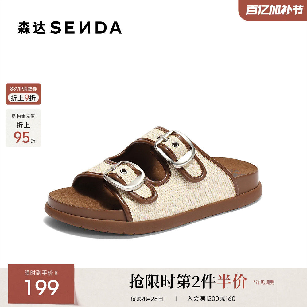 森达全包勃肯鞋厚底春季新款女鞋商场同款超火绝美一脚蹬外穿拖鞋
