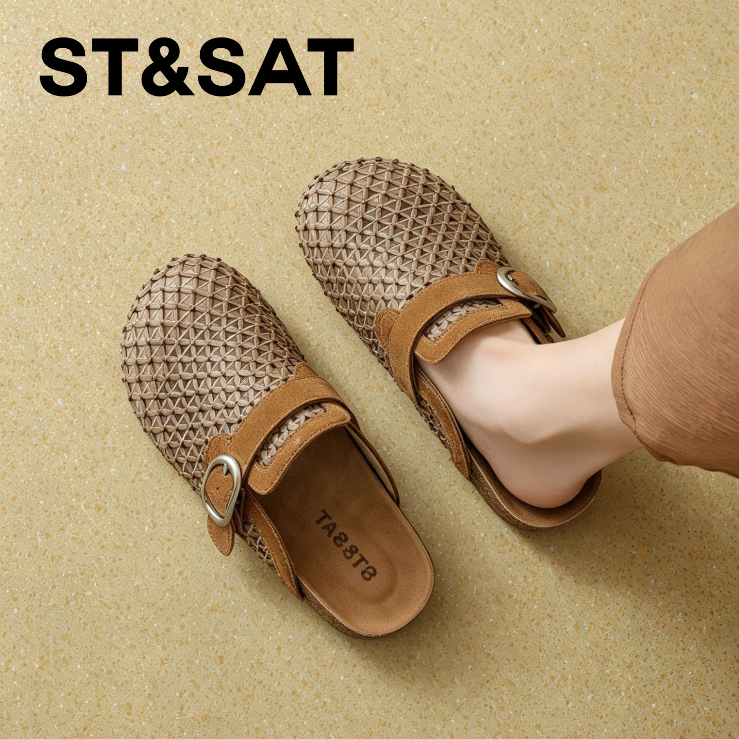 星期六半包头编织拖鞋女2026夏季新款透气勃肯鞋不累脚外穿拖鞋子