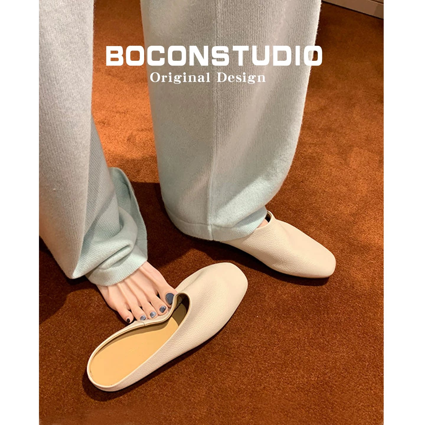外贸原单女鞋新款时尚shoes圆头纯色包头平底半拖鞋日常休闲鞋