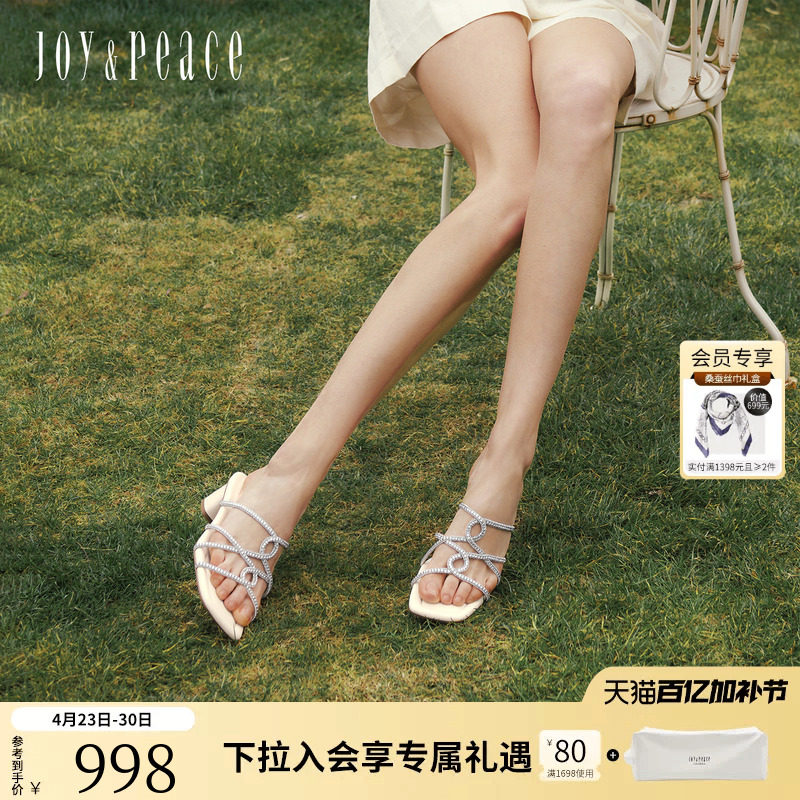 真美诗星光诗2026夏新款对称镂空复古方头碎钻仙女凉鞋拖鞋女外穿