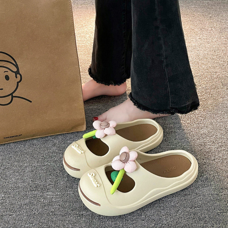 开口笑包头半拖鞋女夏外穿2025年新款网红厚底踩屎感度假沙滩凉拖