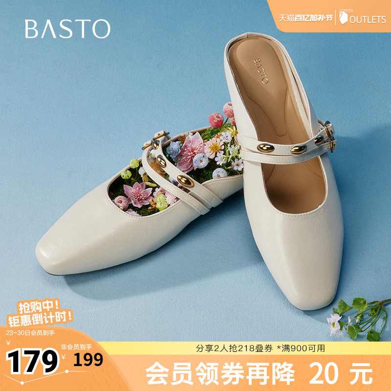 百思图夏季新款简约时尚百搭通勤穆勒拖粗跟女拖鞋F1102BH5
