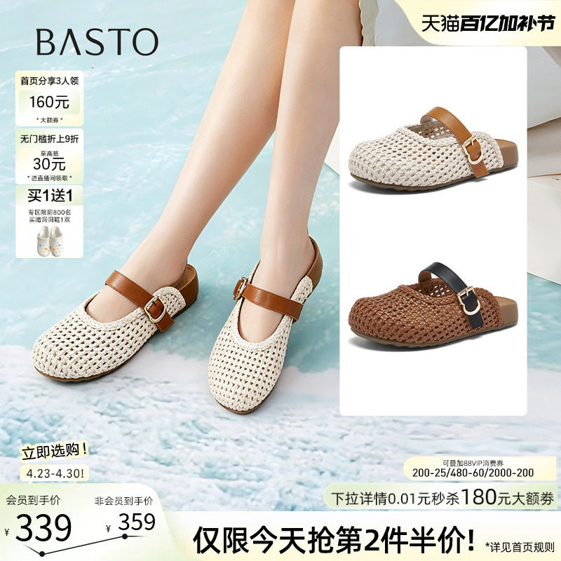 百思图2026夏商场新款厚底编织包头勃肯鞋休闲外穿女拖鞋D5116BH6