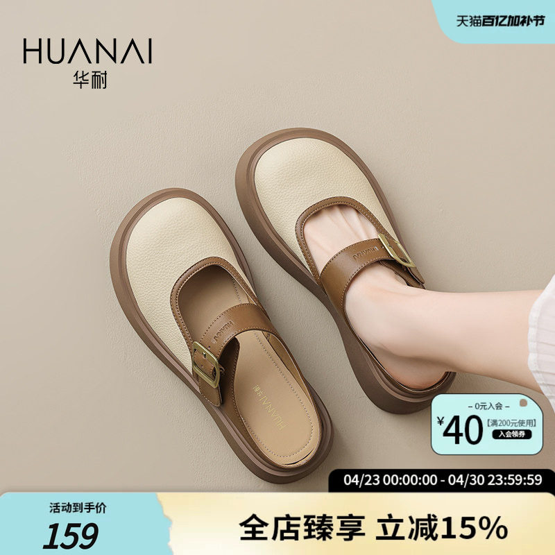 华耐厚底勃肯半拖鞋女夏外穿2026新款小个子增高一脚蹬包头凉拖鞋