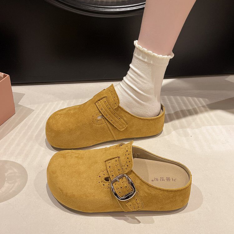 2026春季新款反绒皮勃肯鞋女外穿包头拖懒人一脚蹬百搭休闲半拖鞋