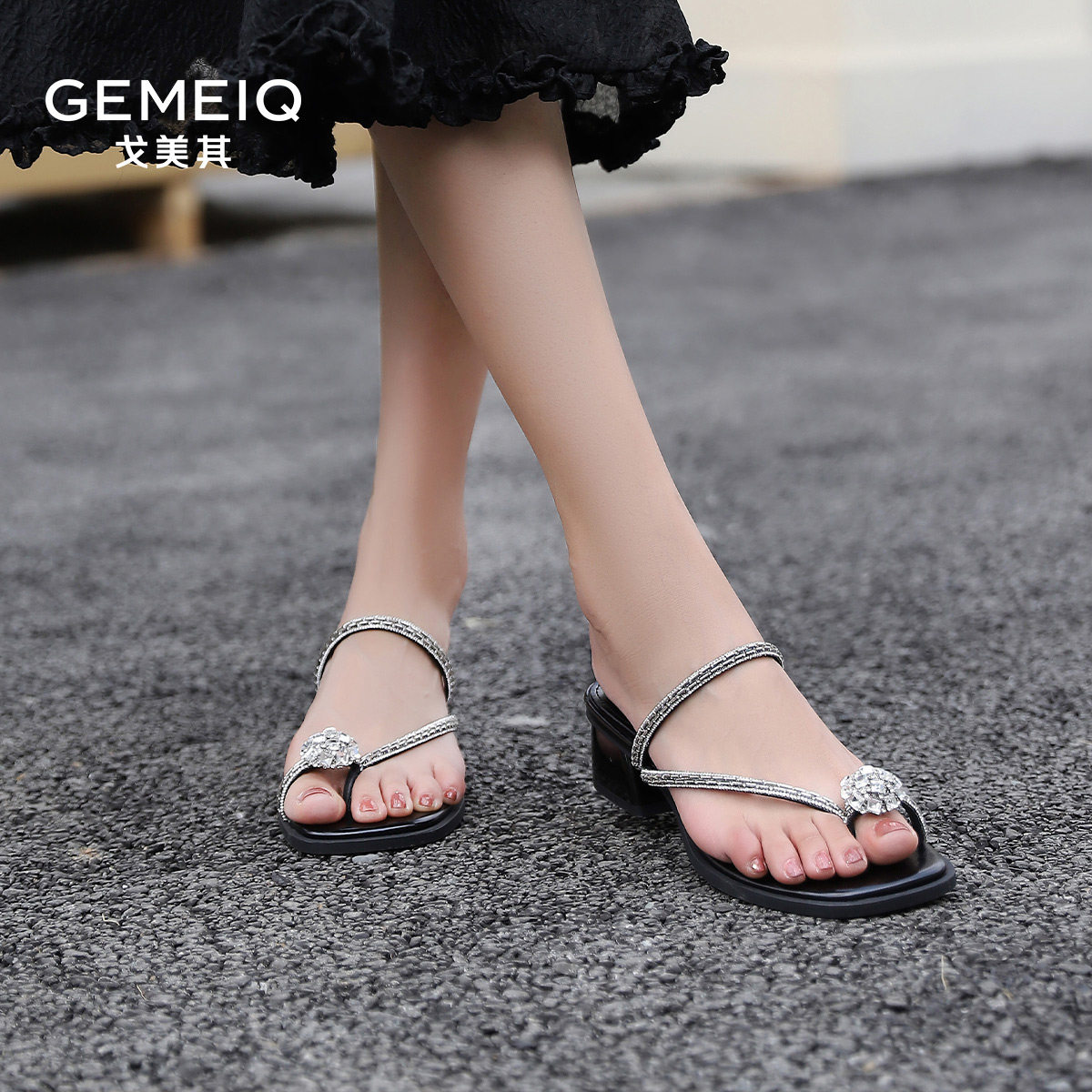 戈美其商场同款细带一字带凉鞋女外穿时尚交叉带低跟拖鞋夏季新款