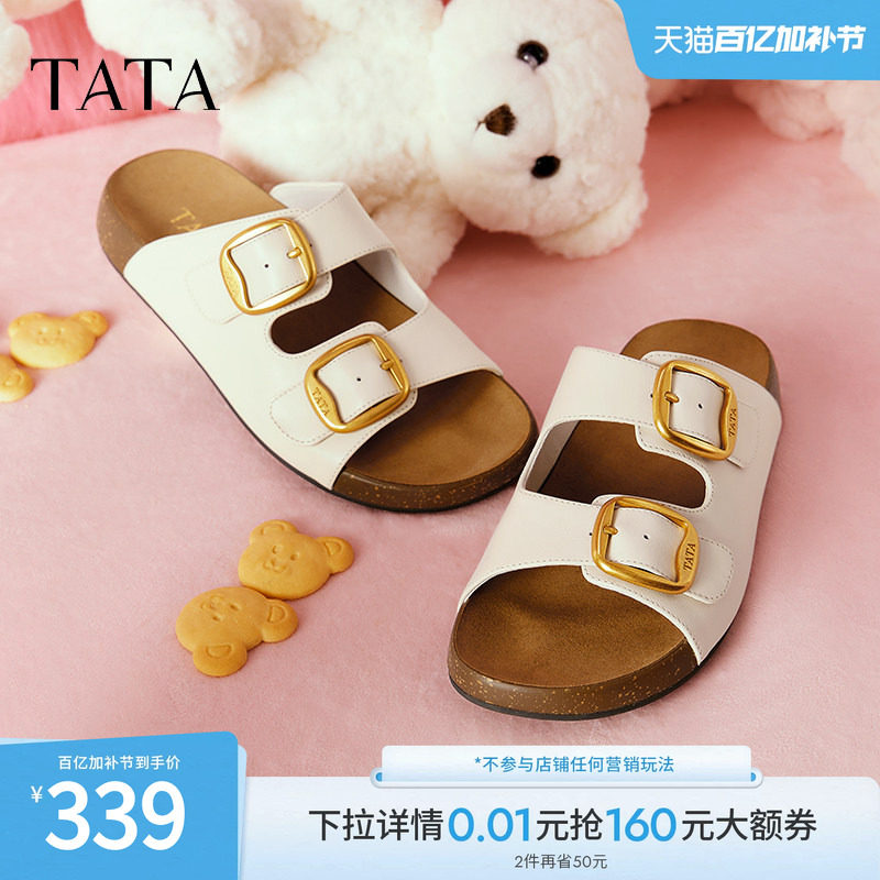TATA他她复古勃肯拖鞋女鞋厚底沙滩外穿通勤凉鞋夏季新款4QK01BT5