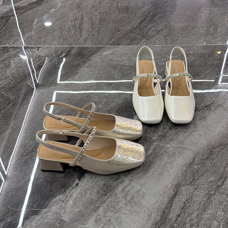 欧洲站2026春夏新款~时尚水钻粗跟玛丽珍单鞋后空方头百搭凉拖鞋