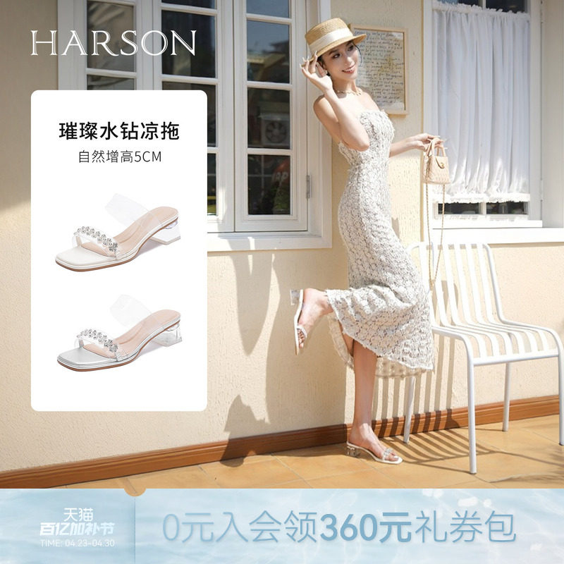 哈森/HARSON【星光时刻】透明法式高跟鞋夏季新款外穿一字带拖鞋