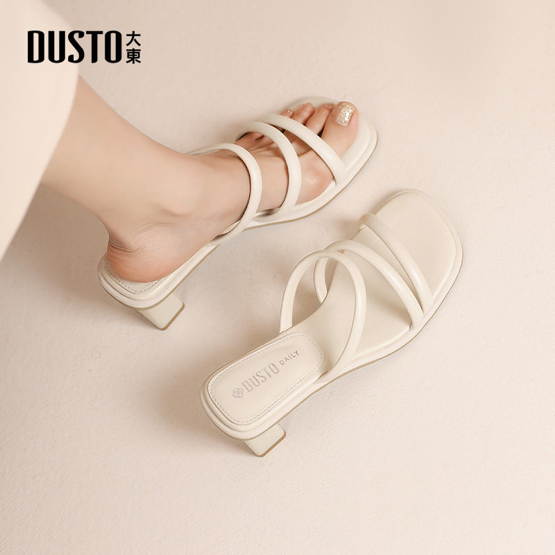 大东时装拖鞋2026夏季新款女鞋简约粗跟高跟鞋一脚蹬方头女鞋凉鞋