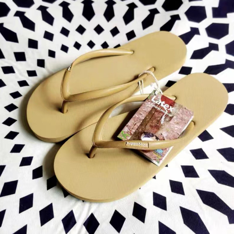 hippobloo泰国乳胶人字拖鞋橡胶细带黄绿红女士款平底室外穿越南