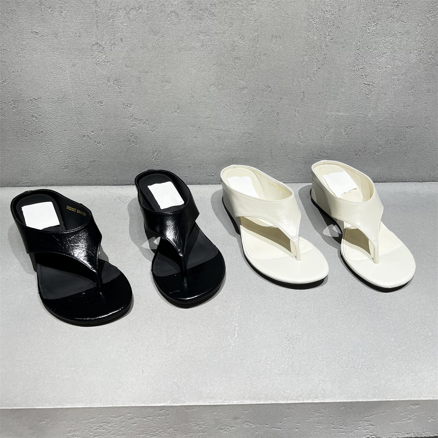 欧洲站女鞋2026夏新款欧货真皮坡跟人字拖凉鞋沙滩风夹趾拖凉拖鞋