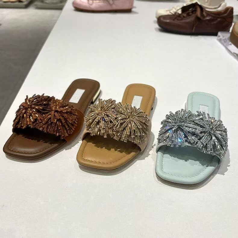 羊皮版~老钱风外穿人字拖女2025夏季新款复古水钻绝美沙滩凉拖鞋