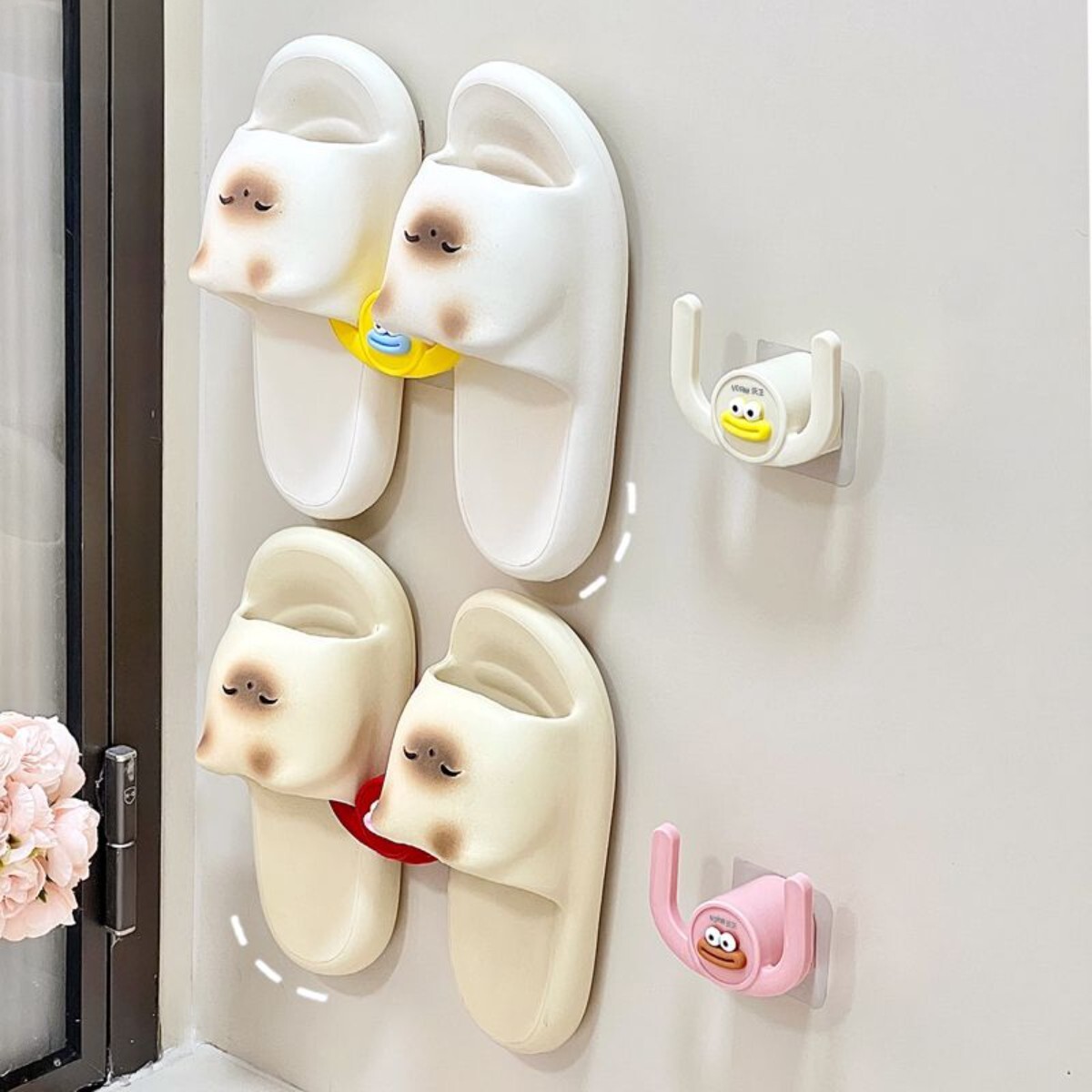浴室拖鞋架壁挂卡通免打孔卫生间收纳鞋架厕所拖鞋挂钩粘钩置物架