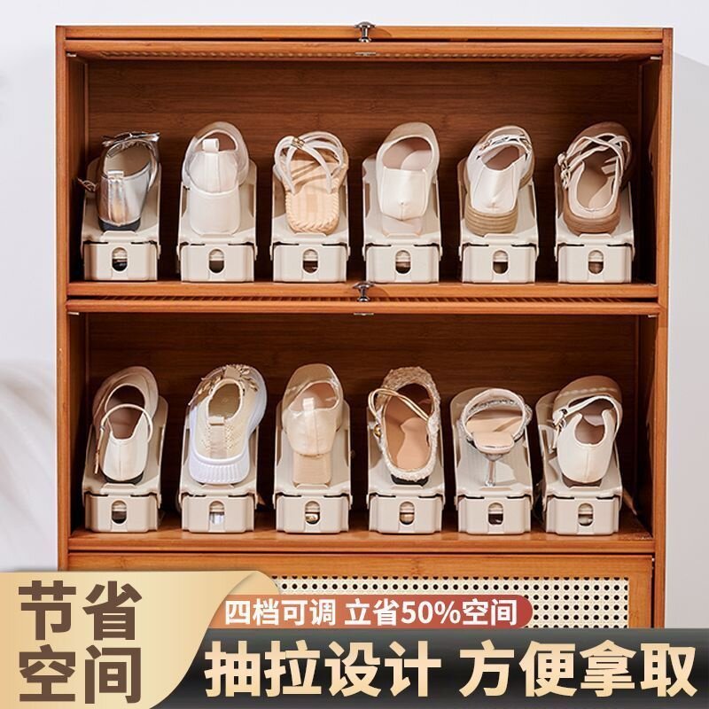 鞋子收纳神器柜内省空间拖鞋托架分双层隔板叠放可调节家用