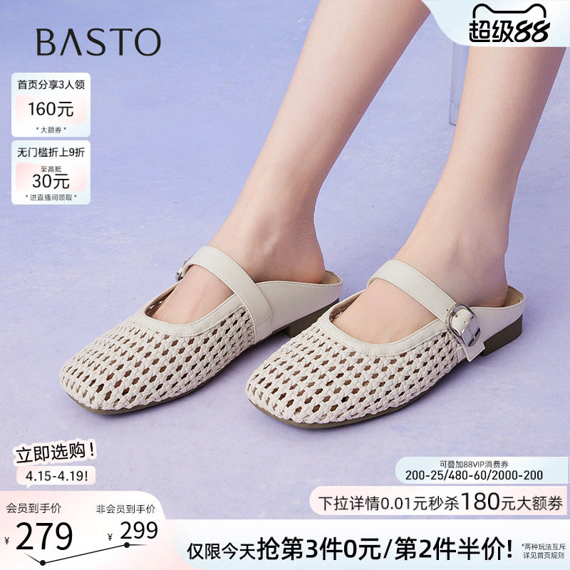 【织女星】百思图夏商场新款穆勒拖一脚蹬外穿女拖鞋F5191BH5