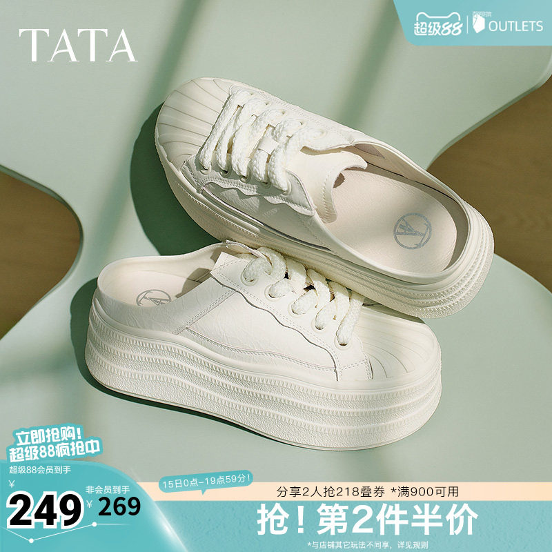 TATA他她厚底休闲穆勒鞋女鞋包头半拖鞋小白鞋春新款CT902BH5奥莱