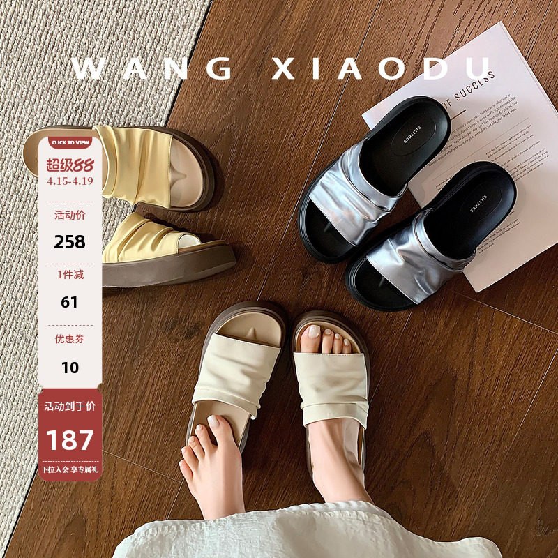 【王小毒】海岛假日●5cm厚底一字拖女2026年夏外穿褶皱沙滩拖鞋