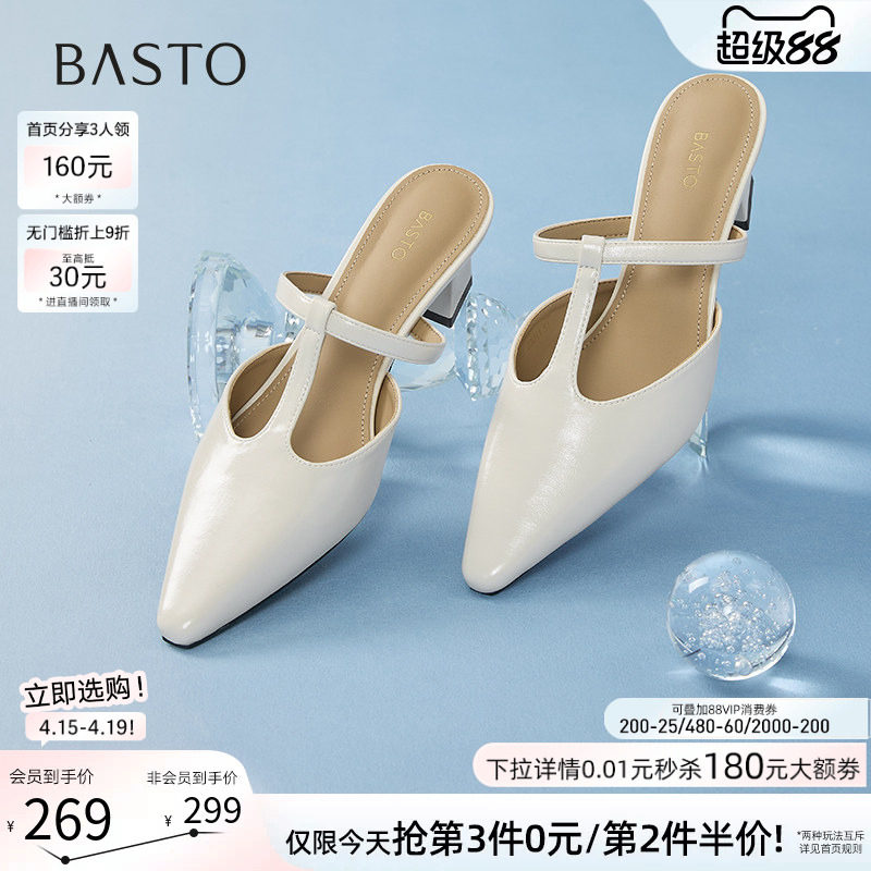百思图夏季商场新款T字玛丽珍穆勒鞋尖头外穿女拖鞋B2612BH5