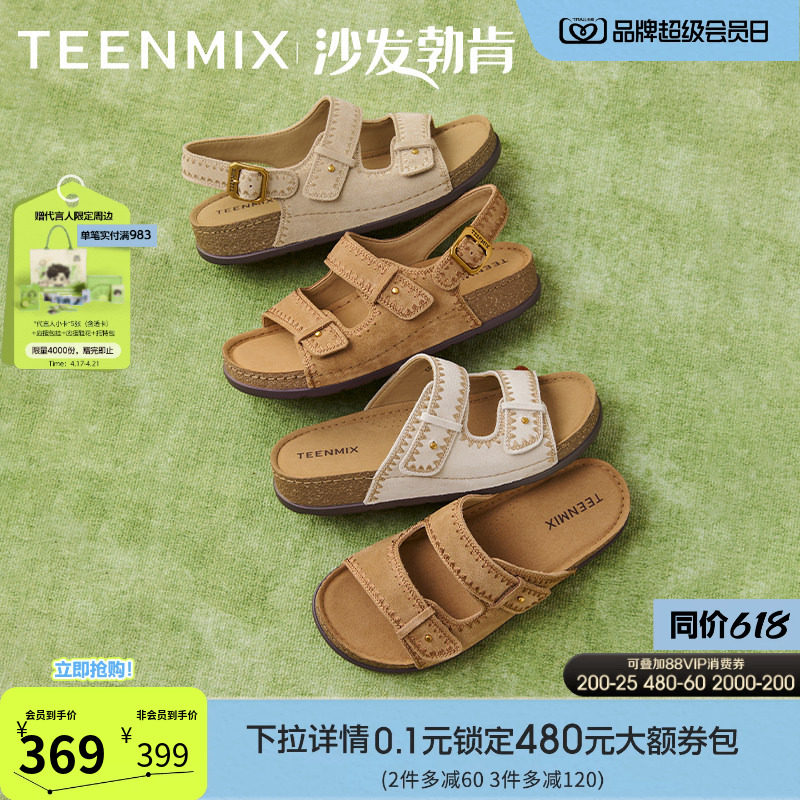 天美意沙发勃肯复古厚底拖鞋女外穿软底沙滩休闲凉鞋夏季新款