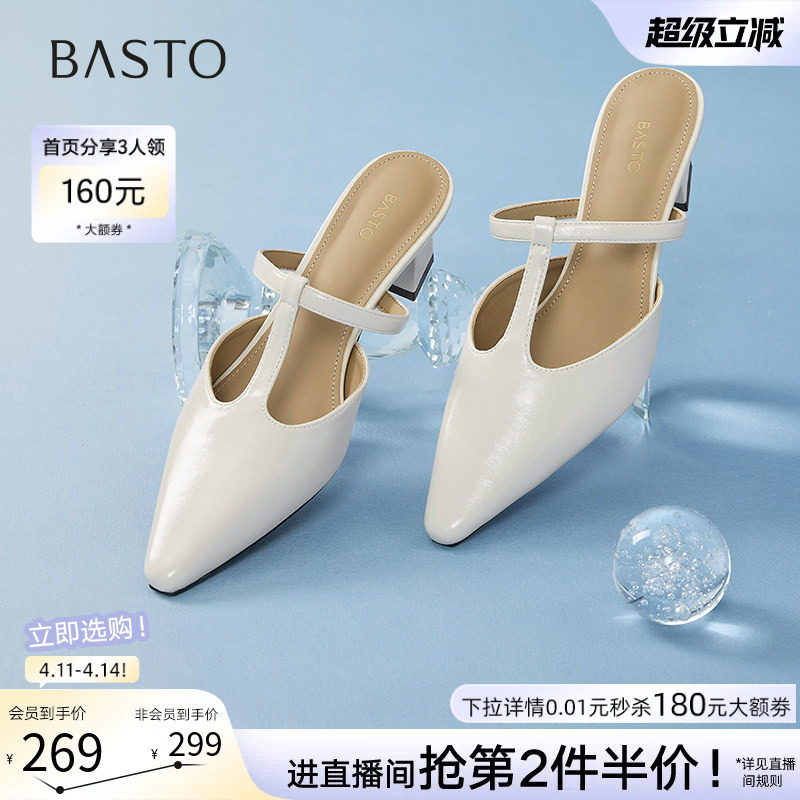 百思图夏季商场新款T字玛丽珍穆勒鞋尖头外穿女拖鞋B2612BH5