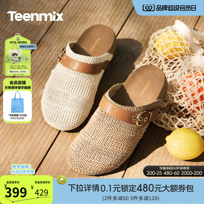 天美意复古编织勃肯包头半拖鞋女厚底凉拖鞋2026夏季新款BM931BH6