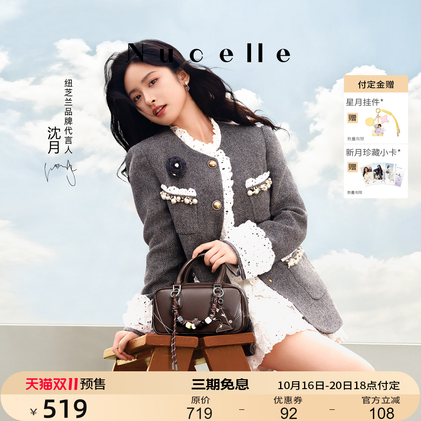 【沈月同款】纽芝兰糖果保龄球包2025新款女式真皮包斜挎波士顿包