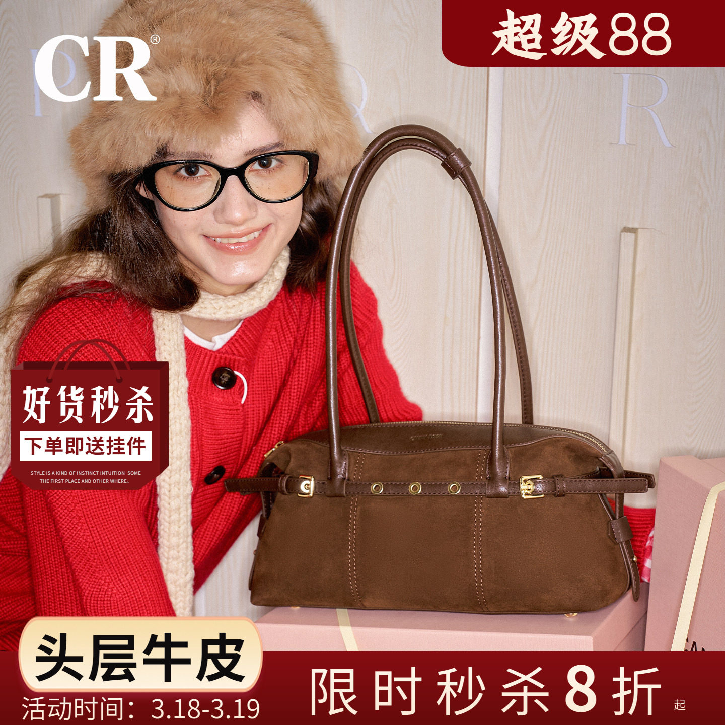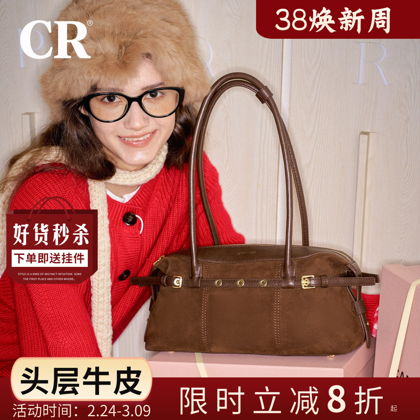 CandyRose头层牛皮包包反绒大容量圈圈包秋冬新款通勤腋下单肩包