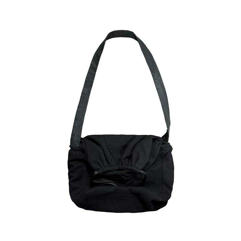 Crying center 哭喊中心 黑色油蜡皮中号斜挎大容量通勤皮包 黑色