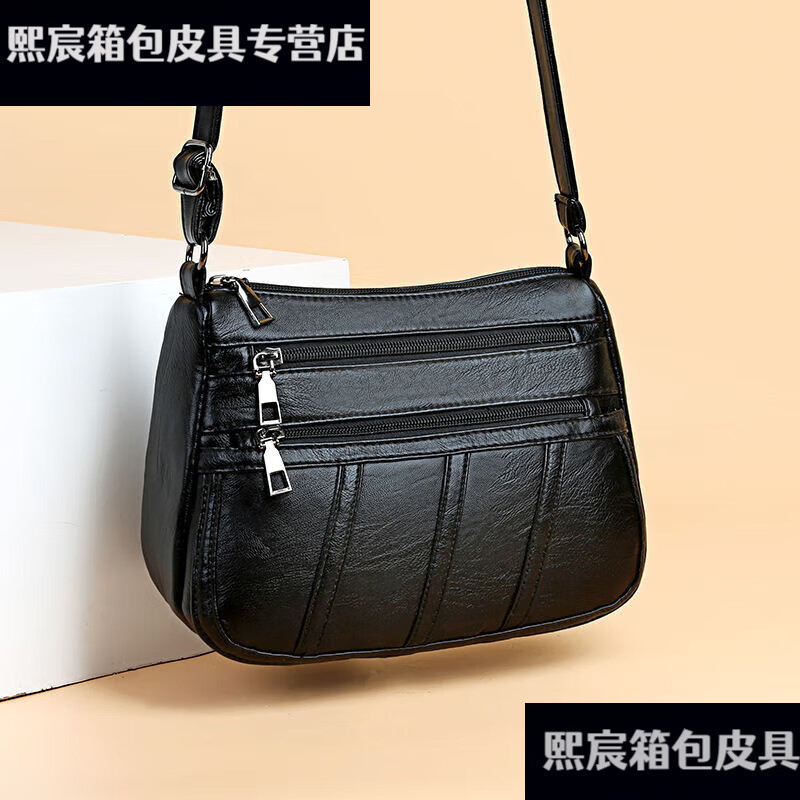 真水洗皮包中老年包包女式斜挎包妈妈老人包轻便软面奶奶小包5层