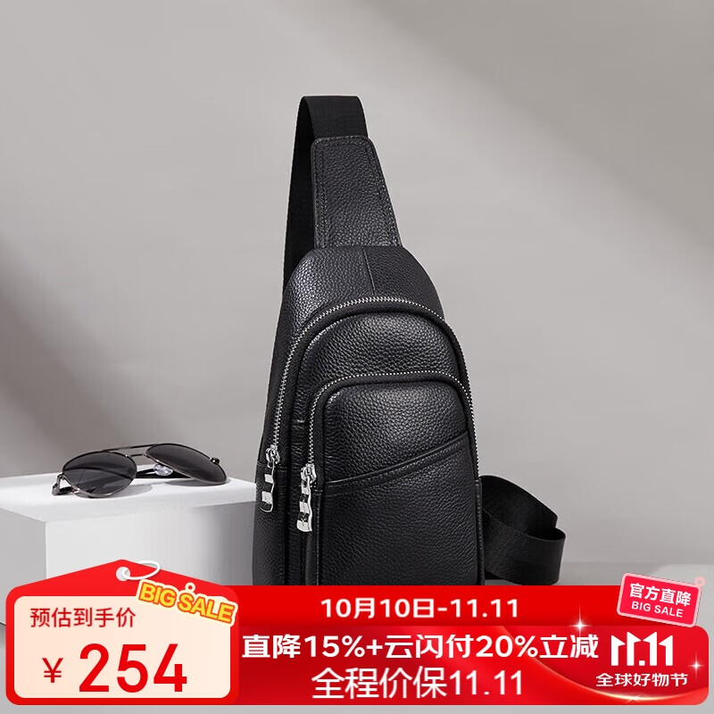 红蜻蜓头层牛皮包包男包单肩斜挎胸包大容量送男友老公爸爸生日礼物