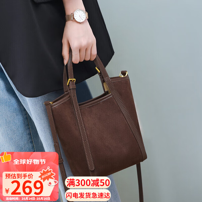 百丽流浪摩卡反绒麂皮包包女hobo大容量斜挎托特饺子包8562ACX5