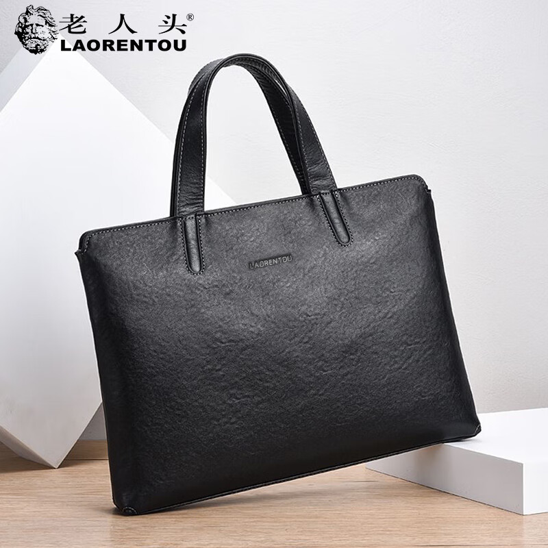老人头(LAORENTOU)男士公文包真皮商务男手提包头层牛皮横款皮包电脑包通勤出差男包