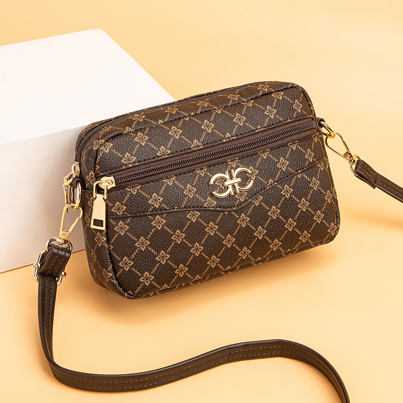 京佳品牌真皮包包2025新款斜挎小包包中老年妈妈款女士软皮包婆婆手机 咖啡色格子花 收藏优先发货