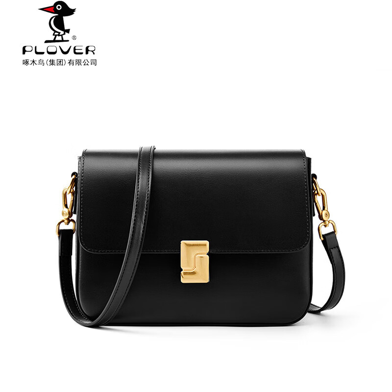 PLOVER真皮包包女包2025新款春夏斜挎包女士通勤单肩豆腐包小方包牛皮包 黑色